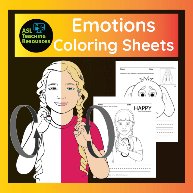 You’re going to love these Emotions Coloring Pages  ASL – School Version! Emotions activities are a great way to learn sign language while playing all at the same time! These coloring pages feature different Emotions-themed signs that you can use for teaching ASL in a fun and engaging way.