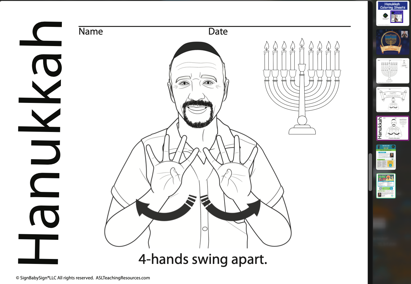 These Hanukkah Sign Language Coloring Sheets, ASL, and bonus poster are the perfect resources for your students to feel special on their day, too. Enjoy the unique touch of holidays this season with not only the coloring sheets but also the related wall charts. These are great for all ages to enjoy. You could even have a coloring contest while promoting learning ASL.